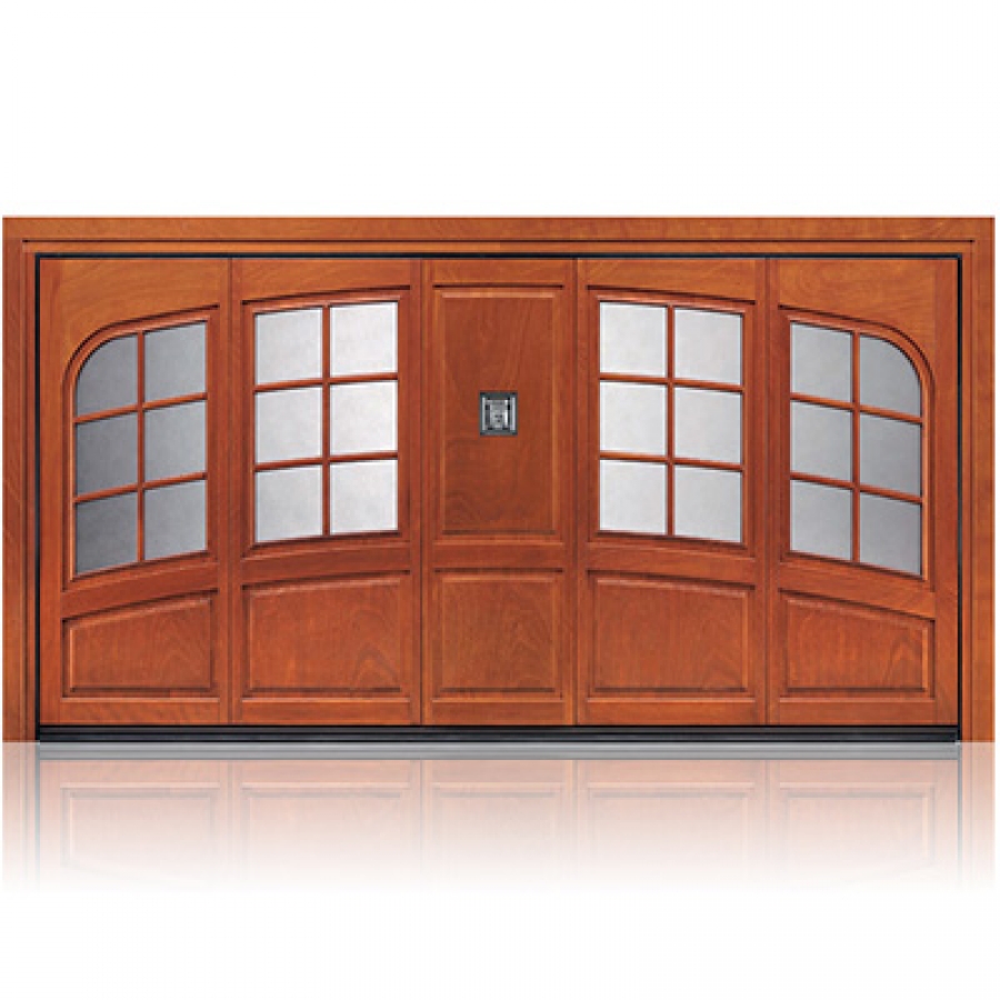 Garážové dvere sú zložené z panelov z ušľachtilého dreva hrubých 80 mm. Môžu byť vyhotovené z rôznych druhov luxusného dreva, a to: africké okoumé, smrek, dub, smrekovec, gaštan, mahagon, teak a douglaská jedľa. Každé z týchto ušľachtilých driev môže byť morené v 7-tich farebných odtieňoch, smrekovec v 4-och odtieňoch. Okrem prírodného prevedenia je možné drevo leštiť a povrchovo upraviť v širokej palete štandardných farieb.