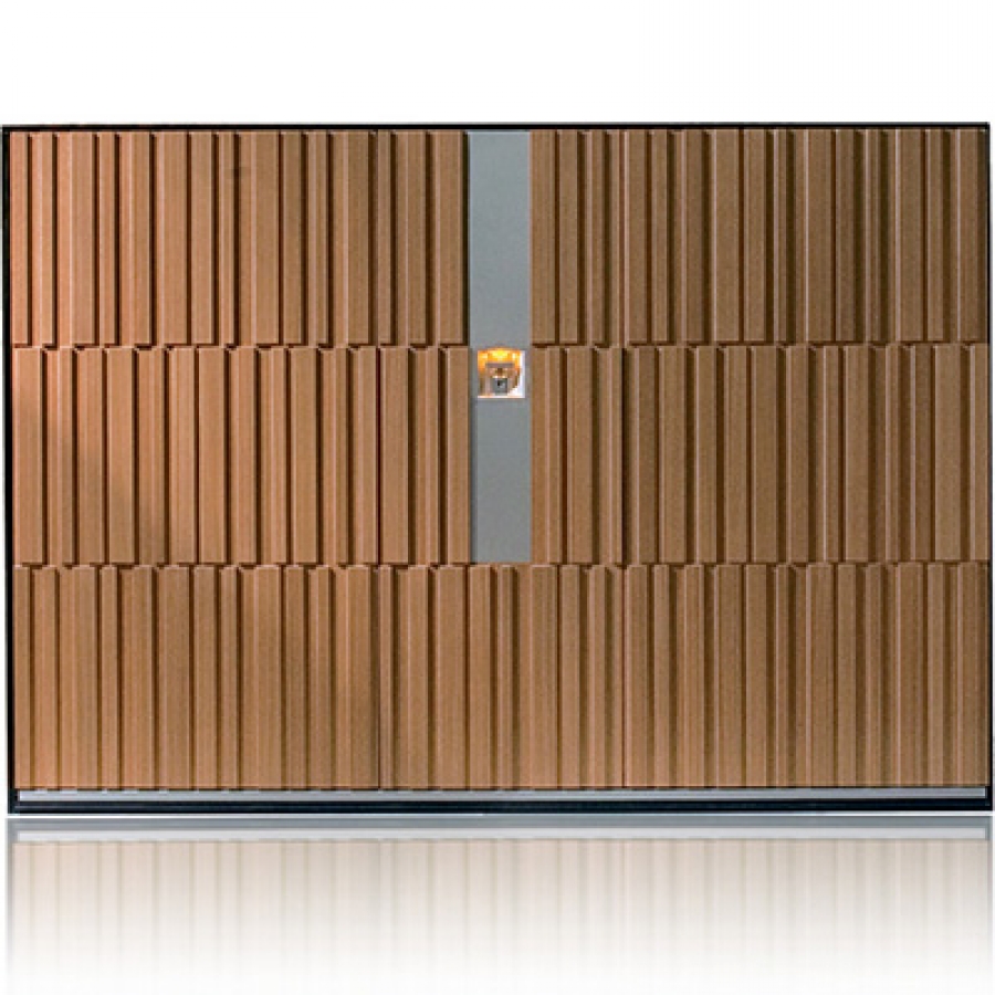 Drevená garážová brána MATRIX je typická originálnou štruktúrou profilu, ktorá dodáva bráne sofistikovanosť. MATRIX pdodáva domu rafinovanú inteligenciu. Garážové dvere sú zložené z panelov z ušľachtilého dreva hrubých 80 mm.