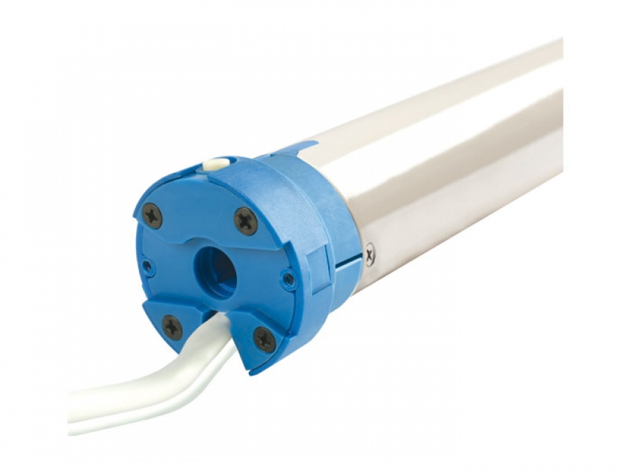 230V trubkový motor s elektronickým koncovým spínačom (encoder) a zabudovaným 433,92 MHz rádiovým prijímačom.